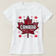 Mit diesem aufwändig gestalteten Ahornblatt-T - Shirt können Sie Ihren kanadischen Stolz unter Beweis stellen. Dieser T - Shirt, der das Wort "CANADA" mutig in der Mitte eines detaillierten roten und weißen Ahornblattmusters, umgeben von kleineren Blätter und geometrischen Akzenten, beherbergt, ist ideal, um Nationalstolz zu feiern und stilvoll stehend zu sein. Ideal für Kanada Tag, nationale Veranstaltungen oder alltägliche Kleidung.