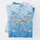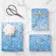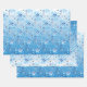 Intrikierte blaue und weiße Sterne und Schneeflock Geschenkpapier Set