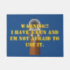 Passen Sie mit dieser blauen Warntür-Matte jede mögliche Zuhause-Invasion ab. Grafik, in der Mitte der Matte, von einem Kanonenrohr und großen gelben Text lesen, Warnung! Ich habe eine Waffe und ich habe keine Angst davor. Personalisieren Sie den Text, um zu lesen, was Sie gewollt haben.