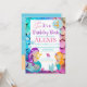 Cette mignonne fête d'anniversaire à thème de sirène est parfaite pour la prochaine fête de natation de votre enfant ou même juste une fête magique de sirène. Mignonnes sirènes avec bulles et coquillages de mer avec quelques adorables sirènes. Tous les renseignements personnels peuvent être modifiés. À l'arrière, vous trouverez également une plage aménagée avec des sirènes et un coffre au trésor. Vous pouvez également mettre des instructions ou plus d'informations à l'envers.