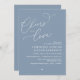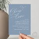 Annoncez votre bonheur toujours après dans le style avec notre magnifique design moderne et poussiéreux bleu thème (Cheers to love) couples douche carte d'invitation de célébration. Avec son design sophistiqué et ludique, cette invitation vous donnera le ton pour un événement inoubliable. La carte d'invitation présente un design de script romantique minimaliste moderne, ajoutant une touche d'élégance intemporelle à votre célébration. Conçu par TeeshaDerrick