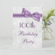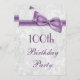 Les élégantes invitations aux fêtes du 100e anniversaire des femmes. La femme est un invitation de fête d'un centième / cent ans. Magnifique arrière - plan damassé blanc avec une jolie image violette / lilas / lavande et ruban. Ces invitations glamour, chic et classe sont magnifiquement sophistiqués et sont décorés / imprimés des deux côtés.VEUILLEZ NOTER : Tous les invitations de Zazzle ont des images imprimées à plat. Images de cordes et de rubans achetées à partir de conceptions numériques-par-elena. Si vous avez besoin d'aide pour customiser votre invitation, veuillez me contacter par l'intermédiaire de mon magasin et je serai heureux de vous aider.