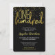 Une magnifique invitation moderne à la fête du 100e anniversaire. Cette fabuleuse invitation présente une typographie à effet or sur un arrière - plan noir avec des confettis d'or. Facile à personnaliser avec vos propres détails de fête d'anniversaire.