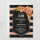 Invitation 100e anniversaire Soirée florale orange rayée