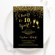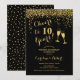 Invitation d'anniversaire de 10 ans de mariage. À 10 ans ! Design élégant en noir et or. Caractéristiques verres à champagne, police de caractères script et confettis. Parfait pour une célébration élégante de 10 ans de mariage. Cartes d'invitation Zazzle imprimées ou modèle numérique à télécharger instantanément. Peut être personnalisé pour afficher n'importe quelle année ! Personnalisez avec vos propres détails.