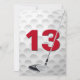 Gros plan de motif de balle de golf blanc avec un club de golf pour 13ème anniversaire. L'âge est modifiable. Tout le texte sur le côté arrière peut être modifié. La couleur du ciel bleu peut être changée.