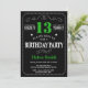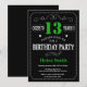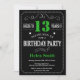 Invitation 13e anniversaire Typographie noire et verte. Tableau de bord. Arrière - plan noir et blanc. Anniversaire adulte. Hommes ou Femmes Anniversaire. Enfants Garçon ou fille Ado Anniversaire adolescent Invitation . 13ème 15ème 16ème 18ème 20ème 21ème 30ème 40ème 50ème 60ème 70ème 80ème 90ème 100ème. N'Importe Quel Âge. Pour plus de personnalisation, cliquez sur le bouton "Customiser" et utilisez notre outil de conception pour modifier ce modèle.