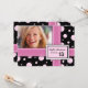 13ème Invitations faites sur commande de photo de fête d'anniversaire avec l'amusement et le motif rose et noir lumineux dern d'enveloppe de cadeau de pois, entièrement personnalisables avec vos détails de photo et de fête d'anniversaire, une invitation unique et élégante pour la fête d'anniversaire d'une fille.