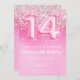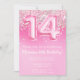 Invitation 14th Anniversaire rose Fille Parties scintillant rose invitation pour une fille de 14 ans avec écriture de script moderne et des ballons de papier amusant.