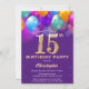 15e anniversaire Ballons violets et dorés et Invitation Confetti. Pour plus de personnalisation, cliquez sur le bouton "Customiser" et utilisez notre outil de conception pour modifier ce modèle.