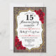 Design élégant rustique avec motif en bois brun foncé, avec fausses roses dorées et rouges scintillantes.
