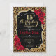 Invitation du 15e anniversaire. Elégant design rouge noir blanc avec parties scintillant d'or. Comprend un poster de animal de guépard léopard, des caractères de script et des roses. Parfait pour une soirée d'anniversaire élégante. Peut être personnalisé dans n'importe quelle année! Message-moi si vous avez besoin d'une personnalisation plus poussée.