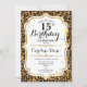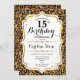 Invitation du 15e anniversaire. Design élégant avec de l'or de parties scintillant imitation. Comprend un poster de animal de guépard léopard, des caractères de script et des roses. Parfait pour une soirée d'anniversaire élégante. Peut être personnalisé dans n'importe quelle année! Message-moi si vous avez besoin d'une personnalisation plus poussée.