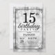 Invitation du 15e anniversaire avec voyants à cordes d'argent avec Arrière - plan Parties scintillant d'argent. Anniversaire de l'Argent. Anniversaire enfant. Invitation Anniversaire garçon ou fille. 13ème 15ème 16ème 18ème 20ème 21ème 30ème 40ème 50ème 60ème 70ème 80ème 90ème 100ème, Tout âge. Pour plus de personnalisation, cliquez sur le bouton "Customiser" et utilisez notre outil de conception pour modifier ce modèle.