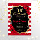 Invitation 16e anniversaire - Black Gold Red White Stripes Ro