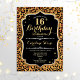 Invitation du 16e anniversaire. Elégant design noir blanc avec parties scintillant en or. Caractéristiques du poster de animal de guépard léopard et police de script. Parfait pour une soirée d'anniversaire élégante. Peut être personnalisé dans n'importe quelle année! Message-moi si vous avez besoin d'une personnalisation plus poussée.