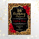 Invitation du 16e anniversaire. Elégant design rouge noir blanc avec parties scintillant d'or. Comprend un poster de animal de guépard léopard, des caractères de script et des roses. Parfait pour une soirée d'anniversaire élégante. Peut être personnalisé dans n'importe quelle année! Message-moi si vous avez besoin d'une personnalisation plus poussée.
