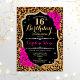 Invitation du 16e anniversaire. Design noir rose élégant avec de l'or de parties scintillant imitation. Comprend un poster de animal de guépard léopard, une police de script et des roses rose chaud. Parfait pour une soirée d'anniversaire élégante. Peut être personnalisé dans n'importe quelle année! Message-moi si vous avez besoin d'une personnalisation plus poussée.