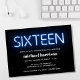 Cool moderne 16ème anniversaire invitation avec "seize" en néon bleu brillant sur un arrière - plan noir.