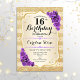 Invitation du 16e anniversaire. Design élégant en or et violet. Il présente des bandes d'or en faux parties scintillant, des polices de caractères roses et des confettis. Parfait pour une fête d'anniversaire glam.
