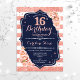 Invitation du 16e anniversaire. Elégant design rose or blanc et marine avec fausse parties scintillant. Parfait pour une soirée d'anniversaire élégante.