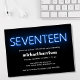 Cool moderne 17ème anniversaire invitation avec "dix-sept" écrit en néon bleu brillant contre un arrière - plan noir.