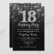 Invitation du 18e anniversaire. Design élégant noir blanc avec fausse parties scintillant argent. Anniversaire adulte. Dispose de diamants et de caractères de script. hommes ou femmes anniversaire invitation. Parfait pour une fête d'anniversaire élégante. Message-moi si vous avez besoin d'une personnalisation plus poussée.