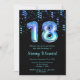 Cette invitation à l'anniversaire élégante et glamour porte le numéro 18 en caractères océaniques avec confettis bleu et vert. Le texte combine écriture manuscrite et polices sans serif modernes pour un look élégant et sophistiqué.