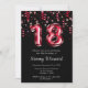 Cette invitation d'anniversaire élégante et glamour porte le numéro 18 en ballons rouges avec des confettis de flocon de neige. Le texte combine écriture manuscrite et polices sans serif modernes pour un look élégant et sophistiqué.