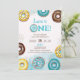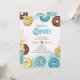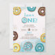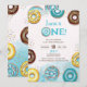 Carte d'invitation au 1er anniversaire plat, décorée d'une image de beignets doux et délicieux.