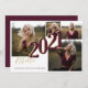 White et Gold 2021 graduation photo collage invitation ou faire-part. Quatre photos à l'avant et plein à l'arrière pour des photos supplémentaires ou des informations sur la fête de remise des diplômes. Gras 2021 année de graduation dans le centre entouré de photos en couleurs complètes.