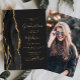 Cette invitation à la fête de graduation 2024 branchée présente une image aquarelle d'un géode d'agate dans les tons noir avec des reflets de parties scintillant en faux or. Le mot "Graduation" et le prénom du diplômé apparaissent dans un élégant script d'écriture manuscrite couleur or sur un arrière - plan non noir, ainsi que les détails de la fête dans les polices sans serif et italique. Remplacez facilement l'image de l'échantillon au dos par une photo verticale du diplômé.