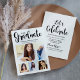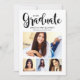La carte de remise de diplômes et l'invitation de la fête présentent "Graduate" dans un script de calligraphie branché avec un collage photo moderne de quatre (4) photos de la grade. La carte recto verso comprend le libellé de la fête de remise de diplômes "Fêtons-nous" et des détails sur le dos. Couleurs design classiques noir et blanc.