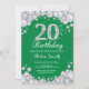 Invitation du 20e anniversaire. Arrière - plan de tableau de bord diamant en pierre verte et argentée. Élégant invitation de Bassorh Anniversaire. Noir et blanc. Anniversaire adulte. Femmes Anniversaire. Hommes Anniversaire. Pour plus de personnalisation, cliquez sur le bouton "Customiser" et utilisez notre outil de conception pour modifier ce modèle.