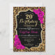 Invitation du 20e anniversaire. Design noir rose élégant avec de l'or de parties scintillant imitation. Comprend un poster de animal de guépard léopard, une police de script et des roses rose chaud. Parfait pour une soirée d'anniversaire élégante. Peut être personnalisé dans n'importe quelle année! Message-moi si vous avez besoin d'une personnalisation plus poussée.