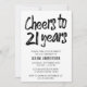Simple Invitation De 21E Anniversaire En Noir Et Blanc. Ce design présente le script "Cheers to 21 years" en police de brosse moderne sur un arrière - plan blanc. Pour modifier ce modèle, cliquez sur customiser plus loin.