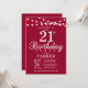 21ème anniversaire Invitation avec lumières à cordes. Arrière - plan rouge de Bourgogne. 13ème 15ème 16ème 18ème 20ème 21ème 30ème 40ème 50ème 60ème 70ème 80ème 90ème 100ème, Tout âge. Pour plus de personnalisation, cliquez sur le bouton "Customiser" et utilisez notre outil de conception pour modifier ce modèle.