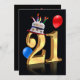Composition d'image et d'illustration ou numéros dorés 21 pour 21ème anniversaire invitation avec casquette de fête mignon sur or 21 avec ballons, Le texte intérieur est entièrement personnalisable