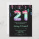 Cette invitation à l'anniversaire élégante et glamour porte le numéro 21 des écailles de sirène aux confettis rose, vert et violet. Le texte combine écriture manuscrite et polices sans serif modernes pour un look élégant et sophistiqué.