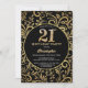 21e anniversaire Black and Gold Floral Pattern Anniversaire Invitation. Pour plus de personnalisation, cliquez sur le bouton "Customiser" et utilisez notre outil de conception pour modifier ce modèle.