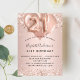 Pour un 21ème anniversaire élégant. Un arrière - plan rose à l'apparence métallique. Décoré d'or rose, de faux glitte rose, de mousseux et de ballons. Personnalisez et ajoutez un nom, ainsi que les détails du parti. Le nom est écrit avec un script de style écrit à la main, numéro 21 avec des polices de style ballon.