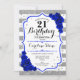 Invitation du 21e anniversaire. Design élégant en faux parties scintillant argent, blanc et bleu roi. Doté d'un fort élégant, rayures et roses bleus. Parfait pour une soirée d'anniversaire élégante. Peut être customisé à n'importe quel âge.