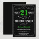 21e Invitation Anniversaire Typographie Noire et Verte. Tableau de bord. Arrière - plan noir et blanc. Anniversaire adulte. Hommes ou femmes, anniversaire. Enfants Garçon ou fille Ado Anniversaire adolescente Invitation . 13e 15e 16e 18e 20e 21e 30e 40e 50e 60e 70e 80e 90e 100e. N'Importe Quel Âge.