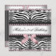 21e fête d'anniversaire Zebra Black dentelle rose blanc Pearl Diamond Bijou Bow. Élégant Classy Toutes les occasions Changez simplement d'âge. Modèle invitations de fête