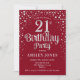 Invitation de fête du 21e anniversaire. Design élégant en rouge foncé et faux argent parties scintillant. Comprend des polices de caractères et des confettis stylisés. Message-moi si vous avez besoin d'âge personnalisé.