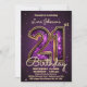 Célébrez en style avec notre incroyable invitation personnalisable à 21e anniversaire, conçue pour rendre votre moment marquant inoubliable. Imaginez ceci : une luxueuse pierre violette, brillante de mille étoiles, ornant gracieusement le devant de votre invitation. Le numéro "21" est affiché dans un motif éblouissant aux facettes qui attire l'oeil et dégage de l'élégance, enveloppé d'une étoffe dorée qui ajoute une touche de sophistication à votre célébration. Mais voici la meilleure partie - le texte est entièrement personnalisable. Vous pouvez personnaliser chaque détail pour adapter votre événement unique, du message d'invitation sincère aux détails essentiels tels que la date, l'heure, l'emplacement et les informations RSVP. Que vous planifiez une grande soirée dans un lieu chic ou un rassemblement intime avec votre plus proche et chère, cette invitation donne le ton parfait. Et la commodité ne s'arrête pas là - un téléchargement numérique instantané est disponible, vous pouvez donc commencer à envoyer vos invitations immédiatement. Pas d'attente, pas d'histoires. Juste une pure excitation non adultérée pour votre prochain bain de 21e anniversaire.