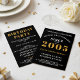 For those born in 2005 and celebrating their 21st birthday party we have the ideal birthday invitation card. The black background with a white and gold design is simple and yet elegant. Easily customize the text to the front and the rear of this birthday invitation card using the template provided. Part of the setting standards range of cards, party supplies and gifts.