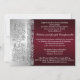 Cette élégante invitation d'anniversaire de mariage de 25 ans en bourgogne avec un travail de défilement en argent FAUX embouti comporte des champs de texte de modèle personnalisables que vous pouvez personnaliser comme vous le souhaitez. Si vous avez besoin d'autres articles assortis dans ce design, ou si vous le souhaitez dans une couleur différente, veuillez envoyer votre demande par courriel à niteowlstudio@gmail.com.