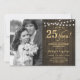 Invitation pour 25e anniversaire de mariage avec photo. Design élégant avec motif de bois rustique brun foncé et dorure fausse. Caractères en écriture cursive et guirlande lumineuse. À 25 ans de mariage ! Peut être personnalisé pour n'importe quelle année. Messagez-moi si vous avez besoin de plus de modifications.