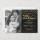 Invitation pour 25e anniversaire de mariage avec photo. Design élégant en or et noir avec police script et confettis. Peut être personnalisé pour afficher n'importe quelle année de mariage. À 25 ans de mariage !
